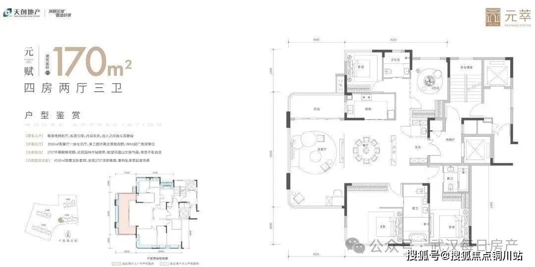 客厅采用270度全景舱设计,非常适合观景的设计,并且南向主卧套房也采用了转角窗设计,观景面再次延伸,配合2号楼西头的位置,可三面俯瞰小区园林+南瞰市政公园,景观视野一绝。